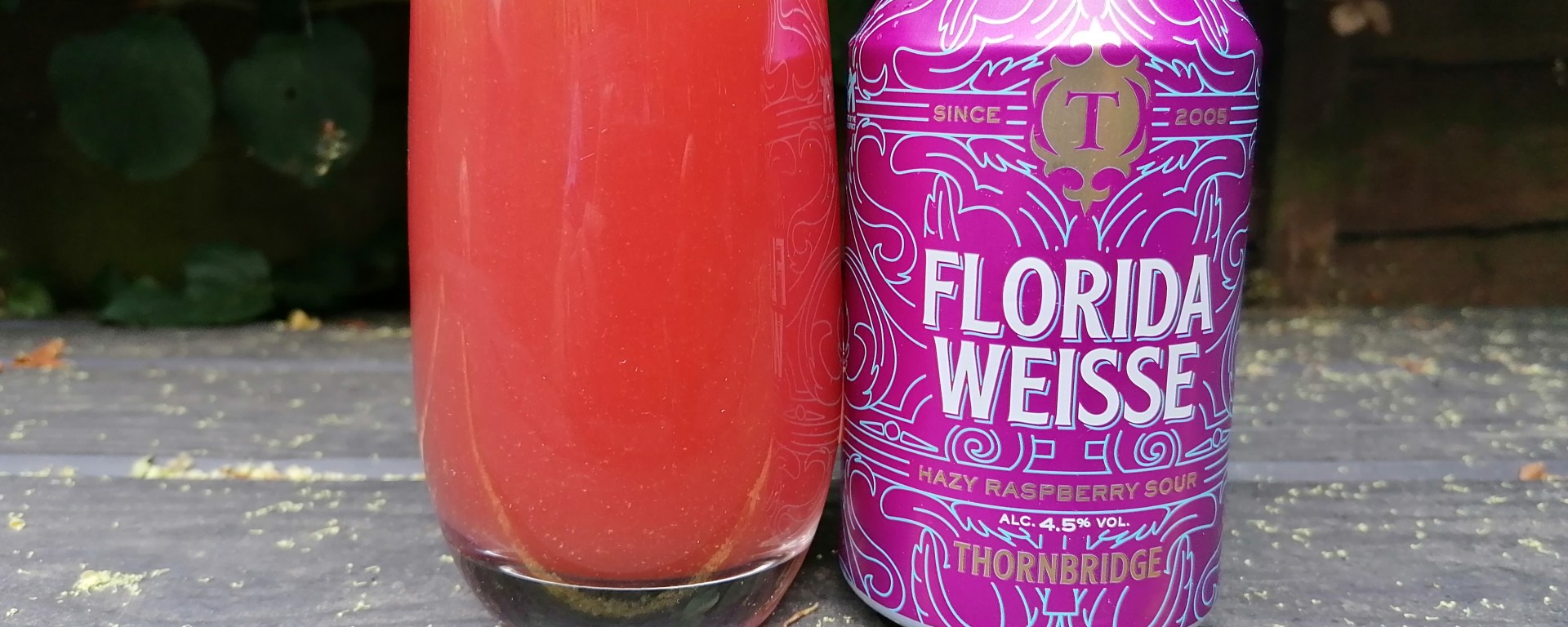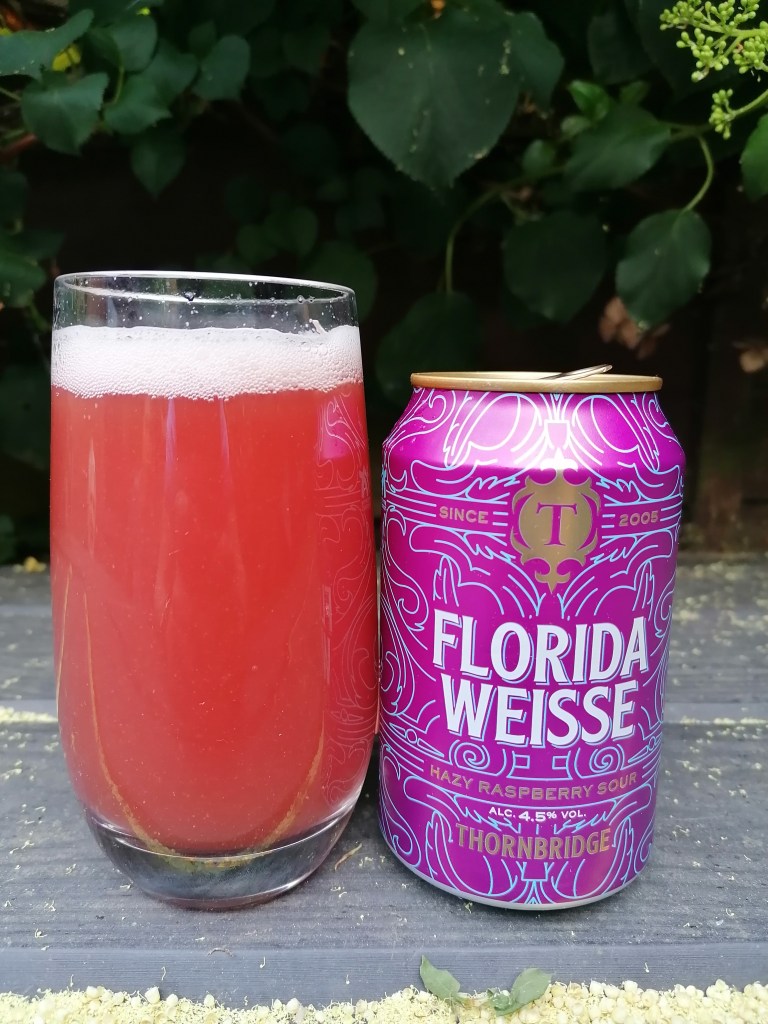 Today’s beer review is from Midlands based brewery Thornbridge and their hazy raspberry sour: Florida Weisse.