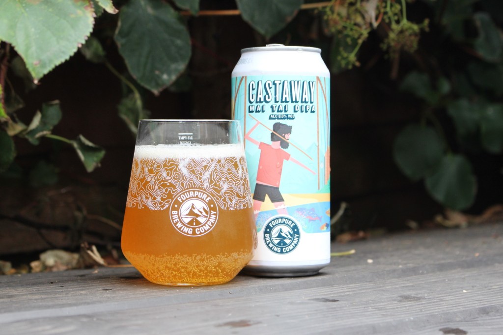 Today’s review is another heavy hitter ABV wise. I’ve returned to another of the Fourpure ‘Globetrotter’ which have been simply amazing in my opinion. Very creative beer ideas that have been executed well. This one is ‘Castaway’ a Mai Tai Double IPA coming in at a massive 8% ABV. I like the idea of cocktail inspired beers and I think the orange citrus of Mai Tai might lend itself well to an IPA.