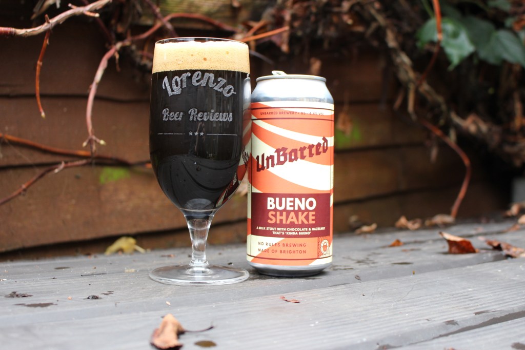 I was searching for a funky beer for a giveaway I’m running on my Instagram (check it out here if you like! https://www.instagram.com/lorenzobeerreviews/). I settled on this ‘Bueno Shake’ from Brighton based Unbarred Brewery, a 6.4% Milk Stout. The idea of a Kinder Bueno flavoured stout just seems like a match made in heaven so hopefully the high expectations I’ve built up for it are met!