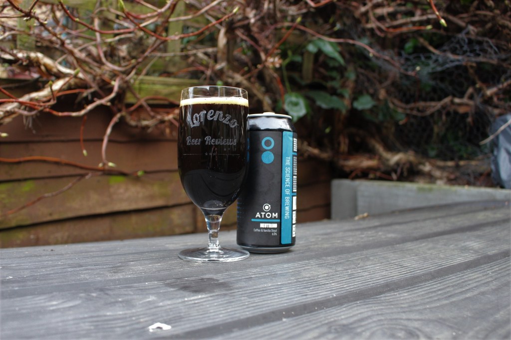 It’s Stout Sunday and today I’m reviewing the last beer from my Premier Hop order I made just before Christmas. All the beers I bought have been solid to outstanding so once I’ve whittled down my recent supermarket purchases I may have to treat myself to another order. I’ve gone for yet another new brewery, this time based in Hull, in the form of Atom! The founders have a background in science so the names of the beers are similarly themed. ‘Neutrino’ is a 6% ABV Coffee & Vanilla Stout.