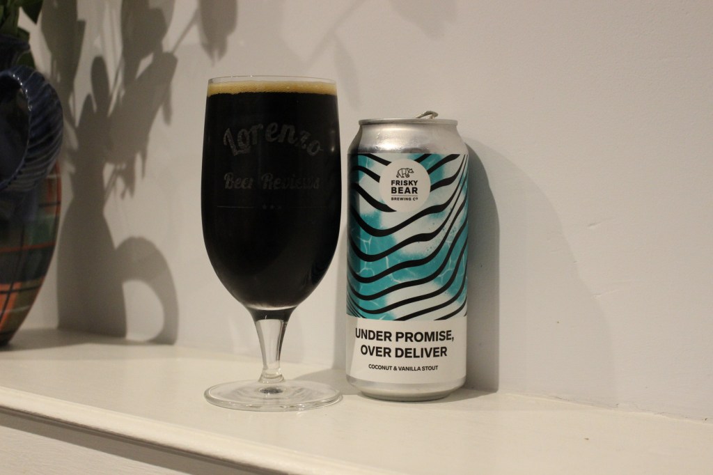 Continuing my beer clear out extravaganza with a stout from another new brewery for me! Frisky Bear is based up North in Leeds, which I actually visited the other day. It’s been a little while since I’ve had a dark beer, mostly because almost all the ones I have are heavy hitters in the ABV department. ‘Under Promise, Over Deliver’ is substantially lighter at 4.5% ABV and has been flavoured with coconut and vanilla. The back of tin professes Bounty in a glass. A bold claim but I was intrigued to see if they could pull it off.