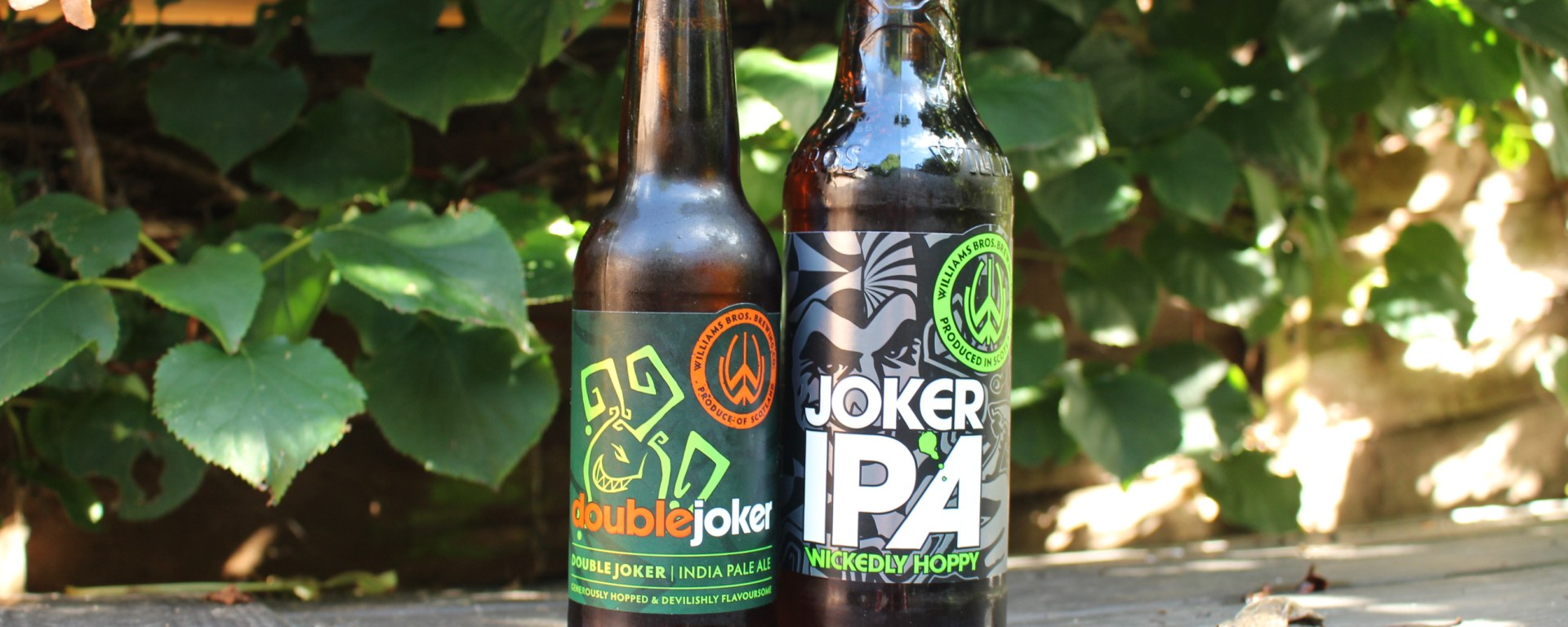 I have sadly missed a couple of days of my October goal: to post everyday this month. An early start at work and a late finish did not leave me time to put out a review. That will not deter me however and despite missing one day I see no reason to not try an post on the rest. So take up for this transgression, today’s blog post is a double review! Williams Brothers from Scotland often have a lot of their beers in Lidl and recently had these two. ‘Joker IPA’ is part of their core range while ‘Double Joker’ is the amped up double IPA version of the orginal clocking in at 8.3% ABV.