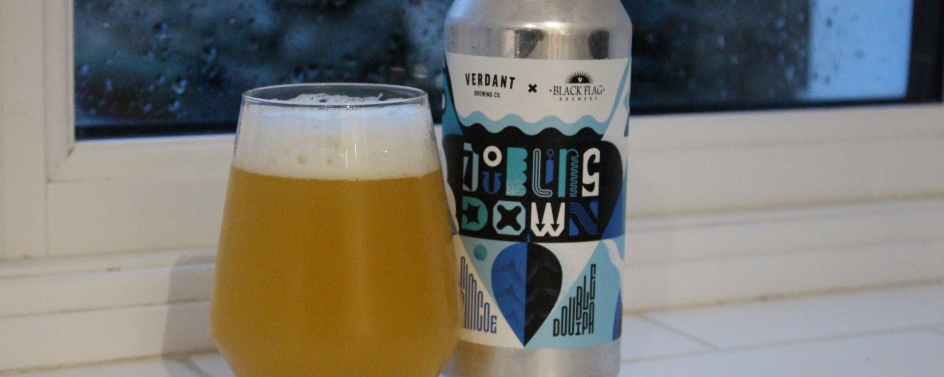 Verdant Brewing Company recently released the Doubling Down series. Four single hop Double IPAs brewed in collaboration with three different Cornish breweries. The one I picked up while down in Falmouth was the Simcoe edition which was brewed with Perranporth based Black Flag Brewery. All the beers in the series come in at a respectable 8% ABV to solidify that Double IPA status.