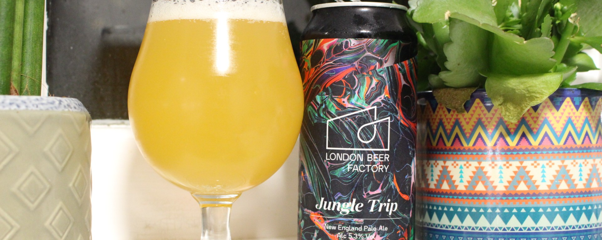 London Beer Factory’s ‘Jungle Trip’ is another beer from my supermarket backlog that I have taken far to long to getting around and drinking/reviewing! You can tell I have had this a while as since then the brewery have re-branded with new artwork and logo (although interestingly on their website ‘Jungle Trip’ has maintained the original look). This beer is a New England Pale Ale at 5.3% ABV and brewed with 4 different hops.
