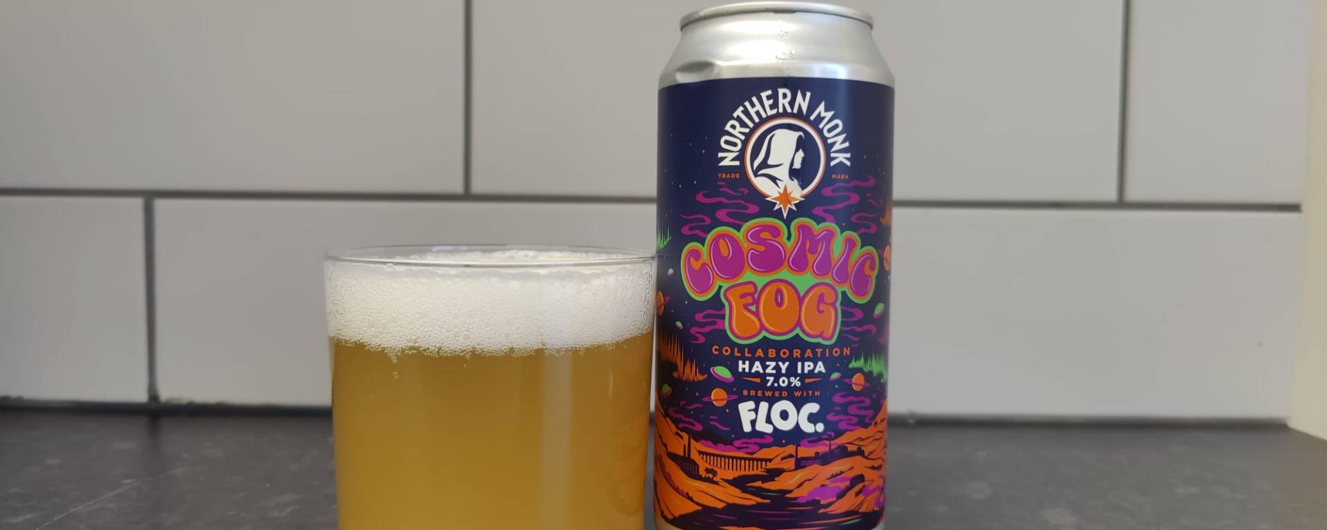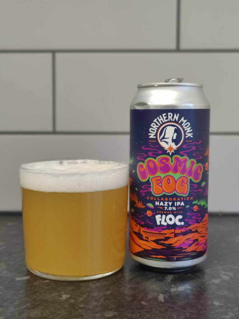 It was my birthday last weekend, so I have spent much of the last seven days out and about. Still drinking during that time, of course, just at assorted pubs and bars rather than at home. I did manage to squeeze in one beer, however, which happens to be this one; Cosmic Fog a collaboration between Leeds based Northern Monk and Canterbury situated Floc. Northern Monk are one of the most well known brewers in the UK with constant collaborations and innovative beers, while Floc brewing have quickly established themselves as one the countries most hype breweries, since it launched in July 2020. This beer, that I found on the supermarket shelves, is a 7% Hazy IPA.