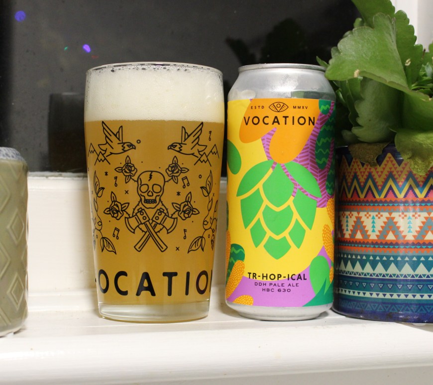 Hebden Bridge based Vocation Brewery have fast become a supermarket staple with a good chunk of their core range and even a selection of specials available on the shelves. One of those specials is ‘TR-HOP-ICAL’, a double dry-hopped pale at 5.7% ABV. It’s been brewed with a brand new, and yet to be named, hop HBC 630 which apparently should be bringing hints of cherry … Continue reading Beer Review: TR-HOP-ICAL – Vocation